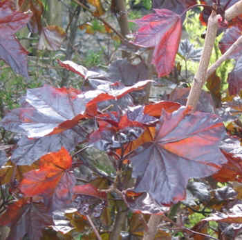 Blöðin eru eins og nafnið gefur til kynna, rauð, dökkrauð og stundum nærri svört.
