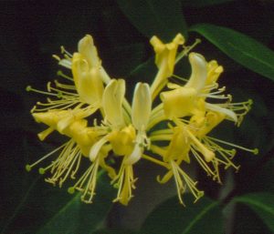 Skógartoppur er með gul og hvít blóm í endastæðum krans. Blómin ilma vel, sérstaklega í logni og á kvöldin. Skógartoppur blómstrar á árssprota sumarsins frá júlílokum og fram á haust. Blómin frjóvgast og myndast rauð ber sem standa þétt saman í höfði. Berin eru óæt.