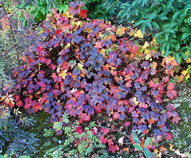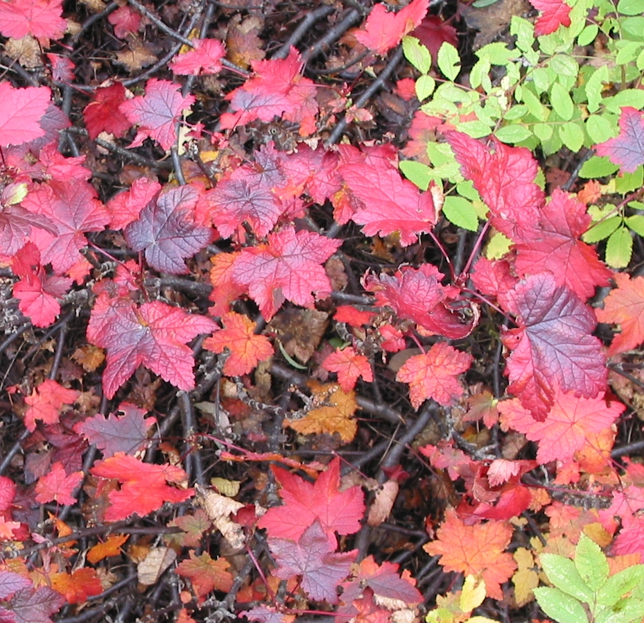 ![]() | Kirtilrifs | Ribes glandulosum | Lágur þekjurunni, myndar um 30-50 cm þykkt greinaþykkni. Laufgast snemma og þolir sein vorhret. Blóm hvít, berin rauð, frekar súr og henta í sultugerð. Fær oft eldrauðan haustlit í september. |