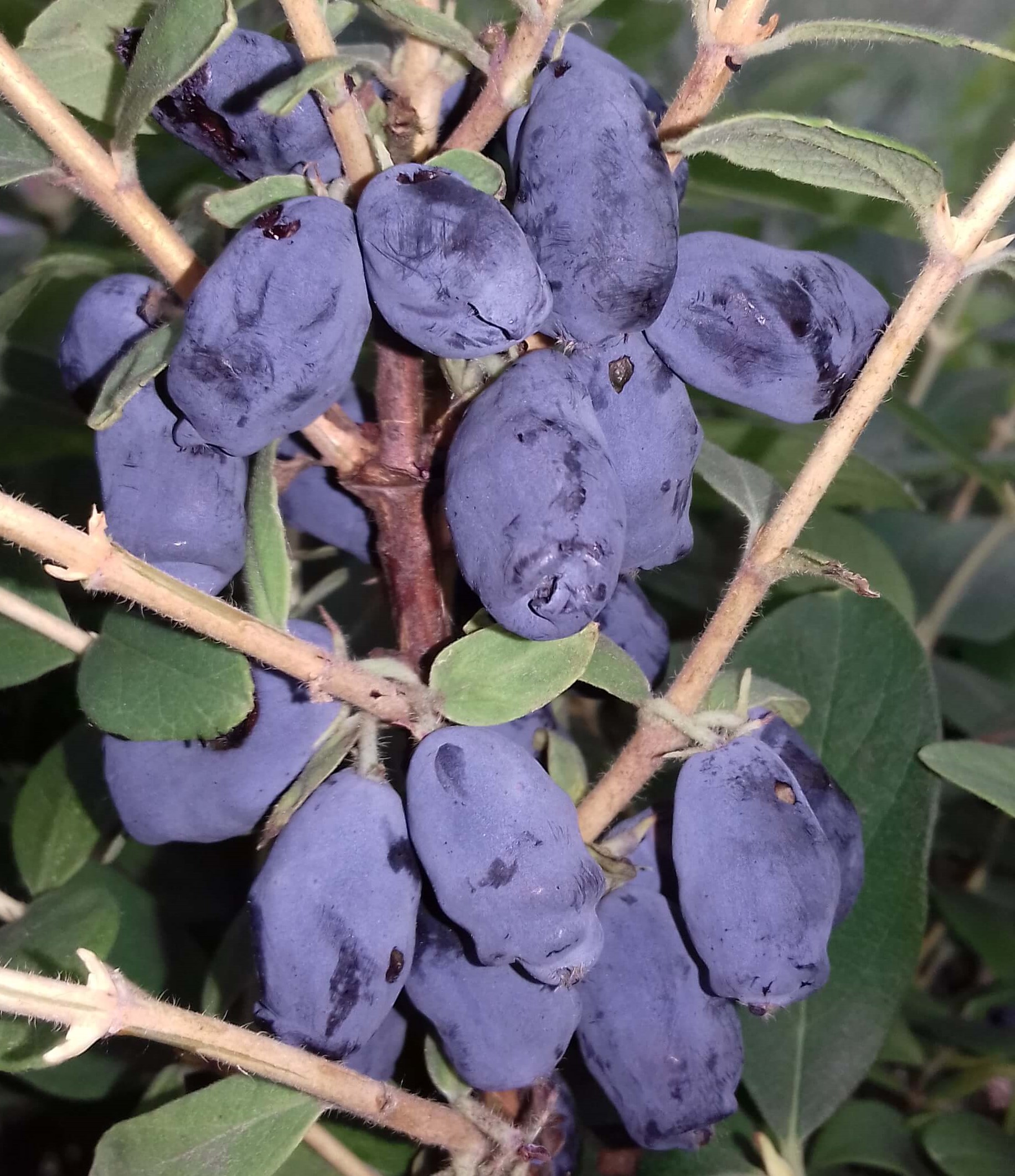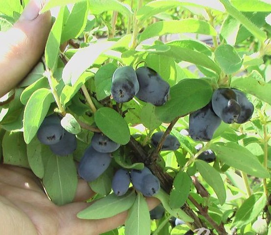 ![]() ![]() | Berjablátoppur Hunangsber | Lonicera caerulea var. edulis, ýmis yrki t.d. Boreal Blizzard, Boreal Beauty, Banana Blue, Boreal Beast, Aurora, Cinderella, Indigo Gem, Tundra, Honeybee, Doc Velikan, Blue Rock, Jugana, Vostock, Borealis | A.m.k. nokkrir tugir úrvalsyrkja eru til, ýmist amerísk að uppruna eða rússnesk. Næringarrríkur, rakur og sendinn jarðvegur hentar þeim. Gefa líka ber í skugga. Berin ílöng, tunnulaga, dökkblá, sæt og einstaklega bragðgóð. Hvert yrki þarf frjógjafa. Best er að para saman rússnesku yrkin sér og þau kanadísku sér. |