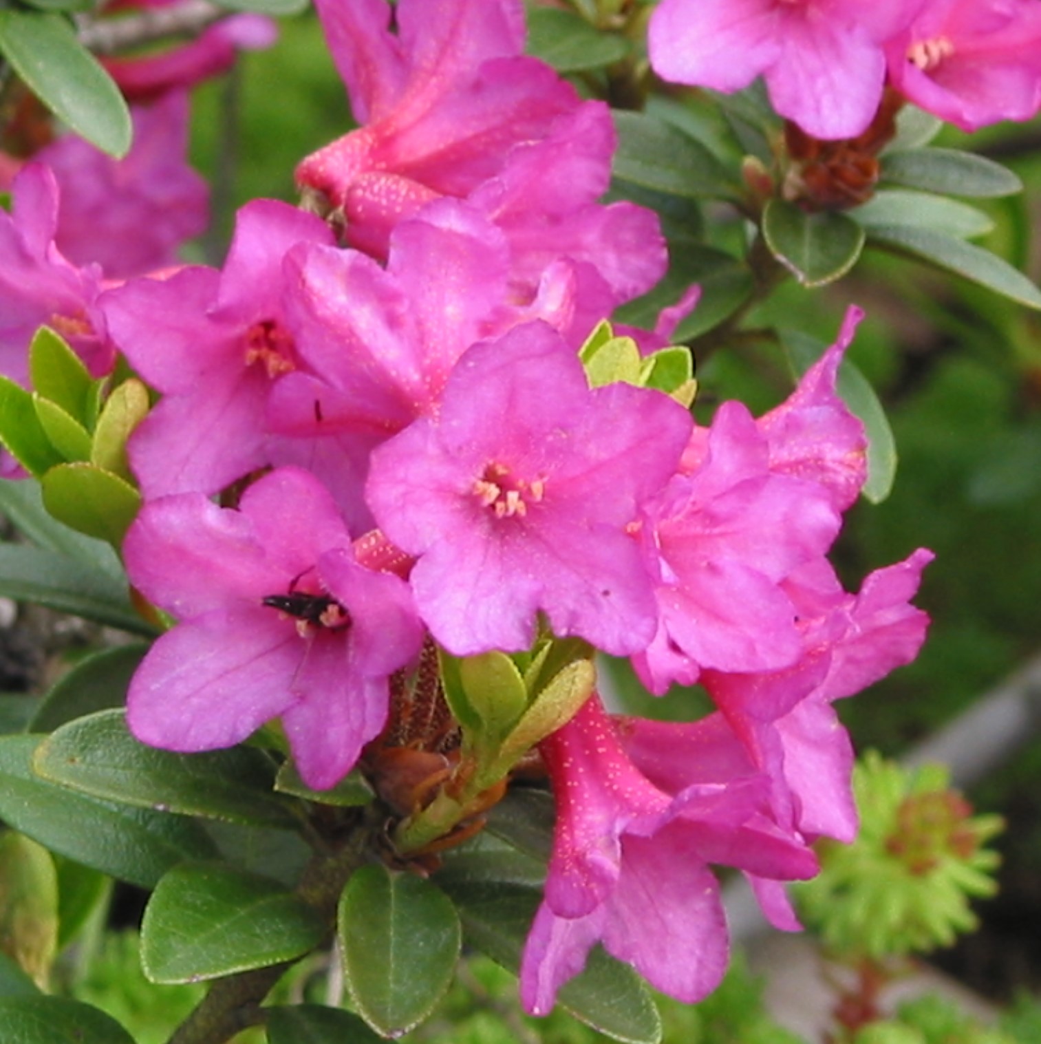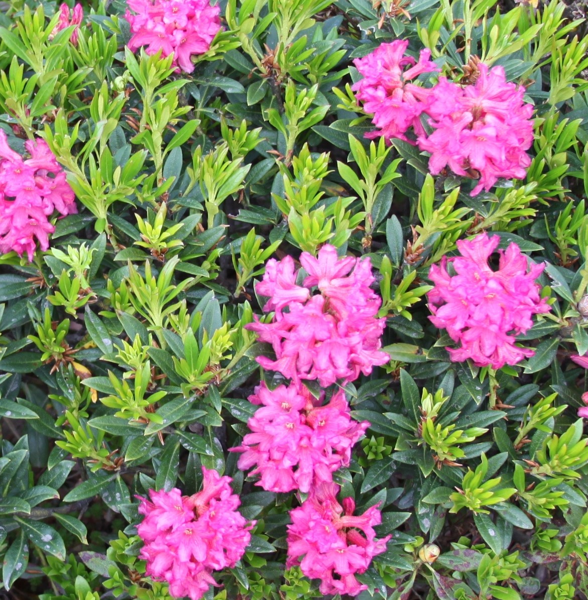 ![]() | Rh. ferrugineum – Urðalyngrós frá Alpafjöllum. | Bleikur | Lágvaxin |