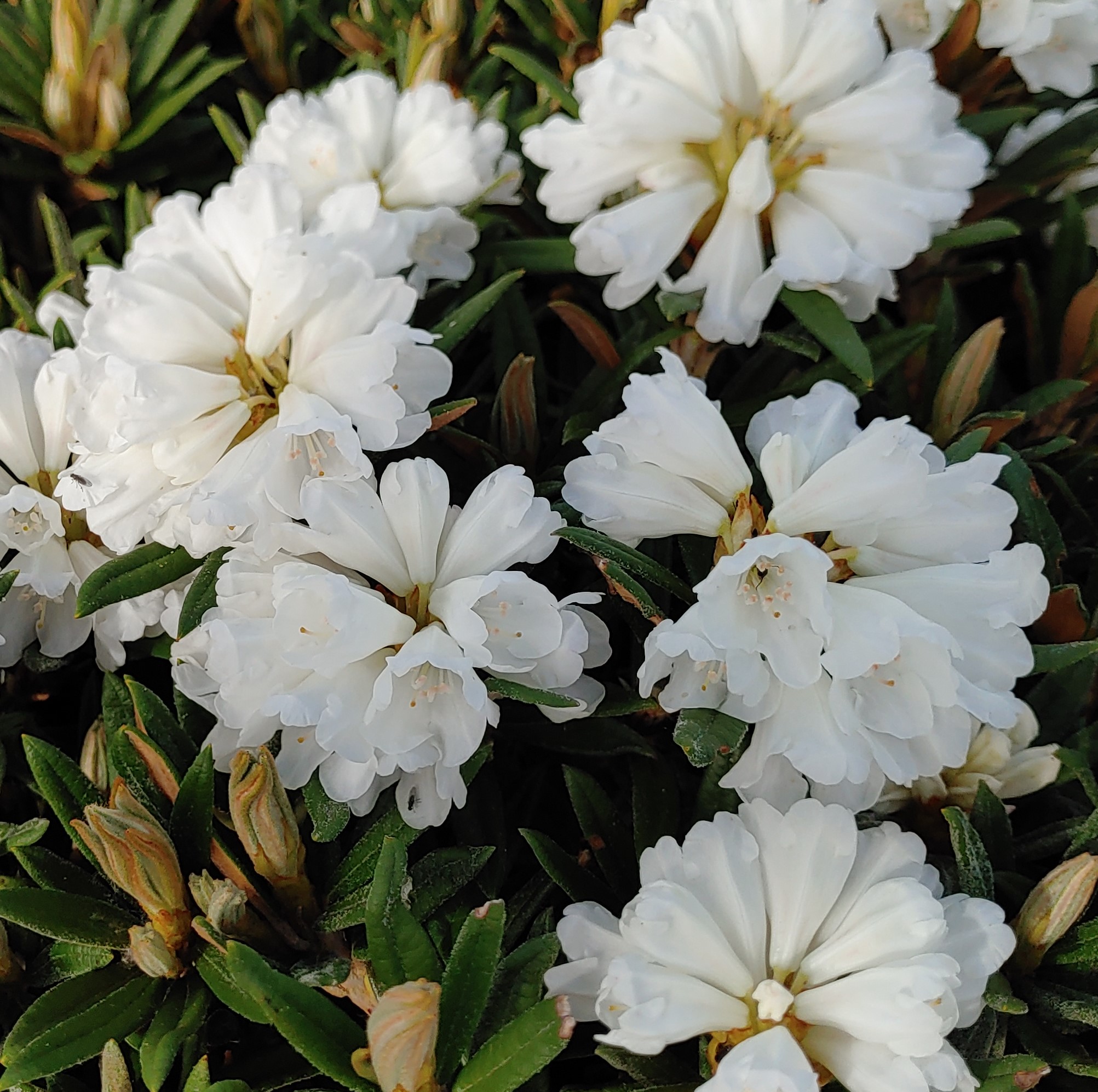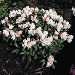 ![]() | ‘Schneekissen’ (yakushimanum hybrid) | Hvítur | Lágvaxin |