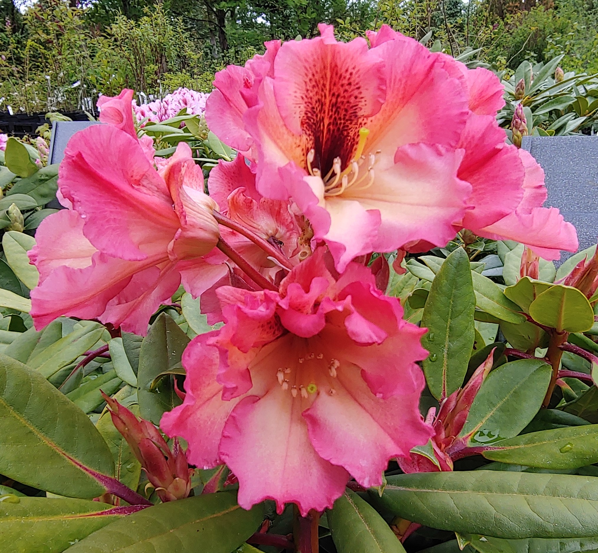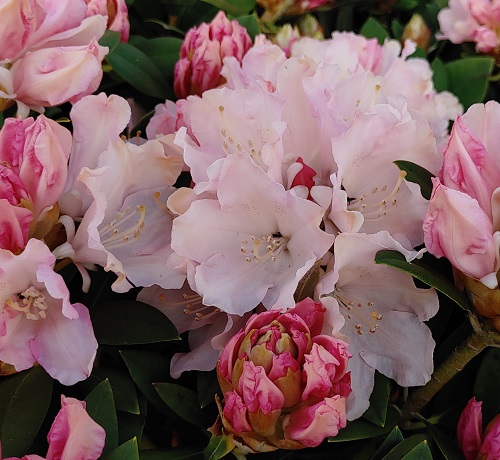 ![]() ![]() | ‘Dreamland’ (yakushimanum hybrid) | Bleikur bylgjuð krónublöð | Miðlungsstór |