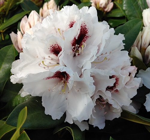 ![]() | Rhododendron roxianum ‘Blewberry’ | Hvítur með rautt gin | Miðlungsstór |